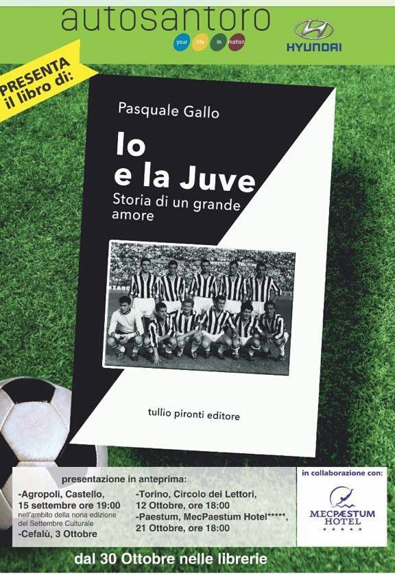 Comunico con grande soddisfazione la presentazione in Anteprima nazionale del mio libro “Io e la Juve, Storia di un grande amore” al Castello Angioino Aragonese di Agropoli giovedì 15 settembre alle ore 19. È prevista la partecipazione di illustri Presenze come del resto accade da nove anni nell’ambito del Settembre  Letterario promosso dall’Assessorato alla Cultura del Comune di Agropoli, perla del Cilento. La presentazione-intervista sarà curata dal Direttore di Telecolore Franco Esposito.  Ospite d’eccezione sarà Luciano Moggi. Vi aspetto speranzoso di una bella ed interessante serata con tutti.